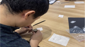 电力学院教师王亮讲解了篆刻技艺起源和技艺;信息学院教师张融雪实际动手操作演示了篆刻的技艺过程;大家一边观看篆刻技艺的视频,一边动手篆刻印章。各位老师以教育家精神--“心有大我、言为士则、启润心智、勤学笃行、乐教爱生、胸怀天下”为篆刻印章的内容,开始学习尝试篆刻,老师们跃跃欲试,手握刻刀,全神贯注于印面上,大家从章法的筹布、印石的整平、上石、刻制与修整认真完成每个步骤,一笔一刻感受着中华艺术文明,印章在刻刀下慢慢呈现。老师们初次体验篆刻,但他们发挥创意,对印面进行设计创新。也通过练习逐渐掌握了执刀、运刀等篆刻要领,手中的刻刀越来越得心应手。大家边刻边交流,增进了解,活动现场气氛活跃,洋溢着浓厚的文化氛围。