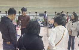 下午13:30,学院教师观摩了射箭训练和自行车训练。参观了自行车馆和综合馆。并体验了射箭项目和自行车项目。
