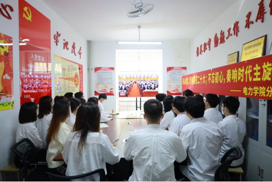 喜迎二十大,奋进新征程。中国共产党第二十次全国代表大会于10月16日上午10时在北京人民大会堂开幕,习近平总书记代表十九届中央委员会向大会作了报告。电力学院党委高度重视,精心组织全院教职工、学生党员、干部以及部分学生代表收看党的二十大开幕会的直播。采用集体收看和自学的方式。集体收看分两个会场,第一个会场地点在教工党员活动室,参加人员包括党委委员、各支部书记、全体辅导员;第二个会场地点在宿舍楼十一舍学生党员活动室,参加人员包括部分学生党员、学生干部、学生代表。其他教师和学生分别在家和寝室通过电视、网络观看了直播。