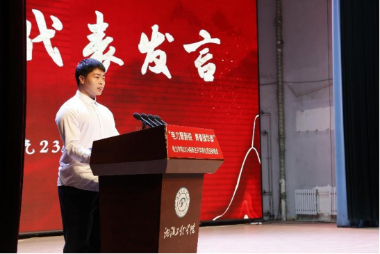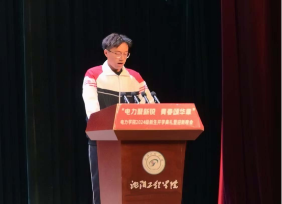 2024级电气245班王天意同学代表全体新生发言。他表示,能够成为电力学院的一员感到无比自豪,将传承“红心向党,技术报国”的红色基因,做又红又专又实的应用型高级专门人才,投身东北振兴,为辽宁高质量发展作贡献,为实现自己的人生目标而努力拼搏。