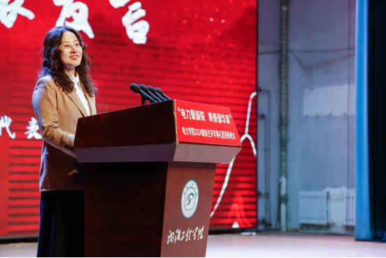 电气工程与智能控制专业系主任王欢博士代表全体教师发言。她说到:作为教师,我们将与你们一同成长,一同探索知识的海洋。我们不仅是知识的传授者,更是你们人生道路上的引路人。我们希望都能在电力学院找到自己的兴趣所在,发掘自己的潜能,实现自己的梦想。