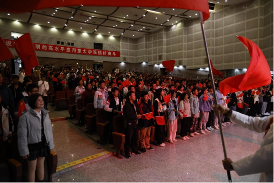 2023级电气236班王雍玮同学代表在校生发言。他回顾了自己来校求学成长的心路历程,从初入校园时的青涩懵懂,到如今的收获与成绩,他在与学校共同奋进中,锤炼了强国有我的青春担当。他鼓励学弟学妹们满怀信心、坚定信念,脚踏实地、不懈奋斗,绽放属于自己的光芒。