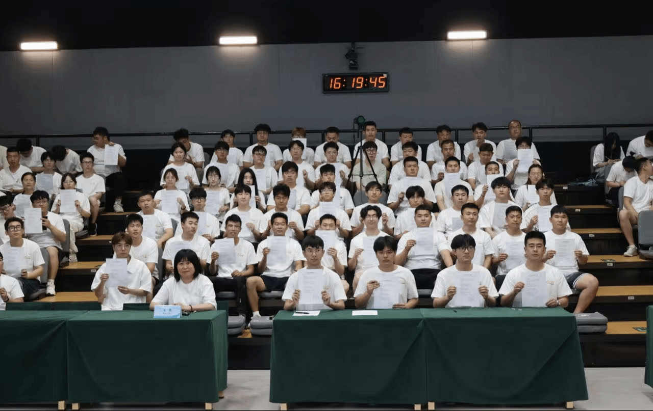 全体电气学子整齐肃立,在学生代表刘德亮的带领下,庄严签订《岗位实践承诺书》并完成集体宣誓。现场氛围庄重热烈,誓言声铿锵有