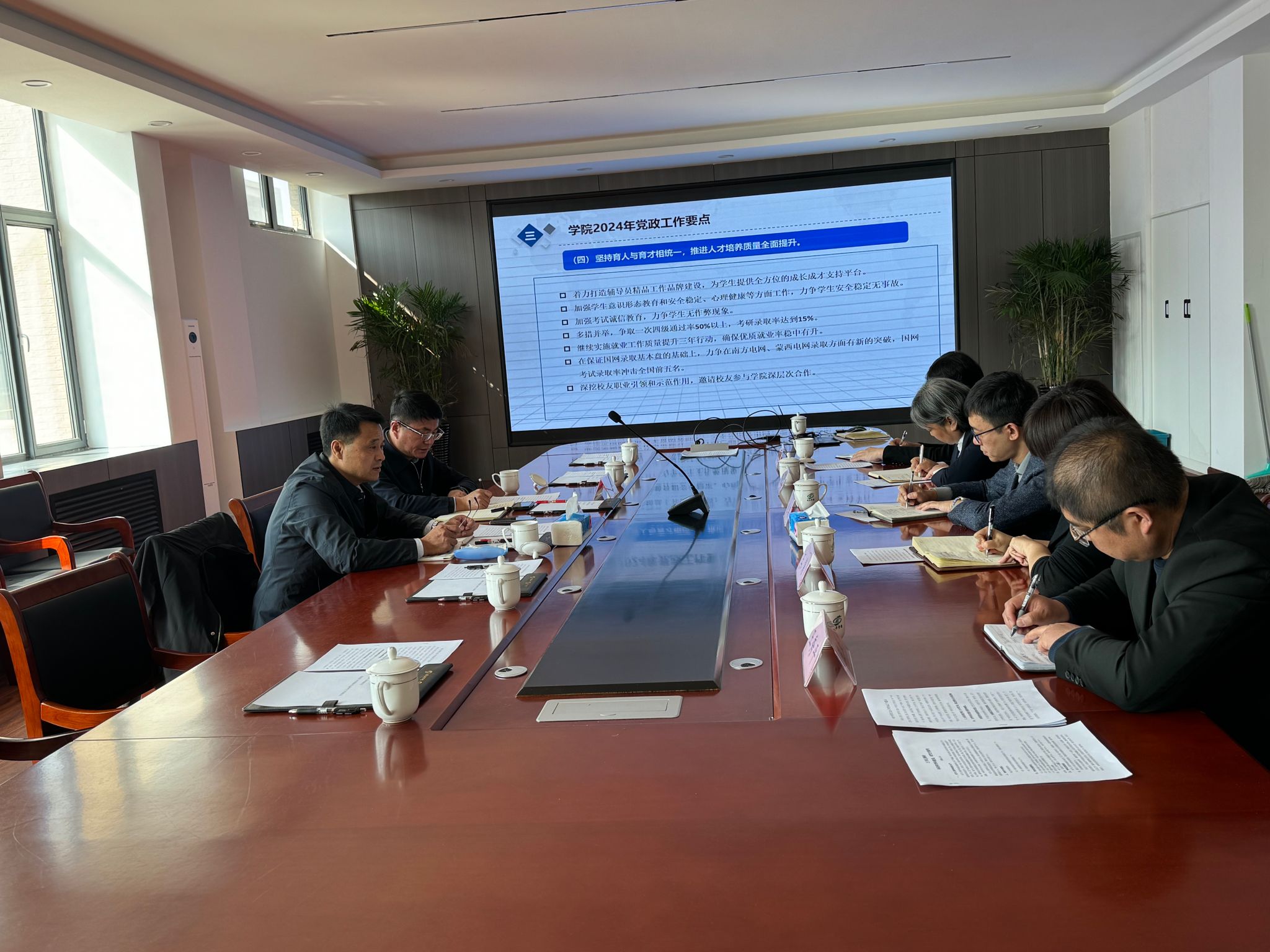 王强书记对我院在专业建设、学科发展、人才培养等方面精准发力,积极发挥我校特色优势,培养能源电力行业人才,助推地方经济发展给予了肯定,并就学院未来发展提出了五点意见:一是加强班子建设,增强政治意识。电力学院作为学校的龙头学院,学校寄予了厚望和重托,希望学院领导班子要勇于承担责任和使命,提高政治站位,发扬优良传统,保持良好的发展势头。二是坚持办学优势,增强忧患意识。电力学院要聚焦产业升级和经济社会发展需要,主动适应新要求,找准结合点和对标点,加强学院发展顶层设计,明确目标、持续发力。三是查找问题不足,增强问题意识。学院领导班子要坚持立德树人根本任务,敢于发现问题,主动谋划布局工作,助推学校高质量发展。四是明确发展目标,增强发展意识。学院应细化实化各项举措,在立德树人、师资队伍、学科建设、人才培养等方面打出一套有特色的“组合拳”。五是坚持党建引领,增强创新意识。发挥学院党委政治核心作用,凝聚合力,激发每位教职工的积极性、主动性和创造性,推动形成心齐气顺、风正劲足的良好局面,不断攻坚克难,为学校发展做出更大的贡献。