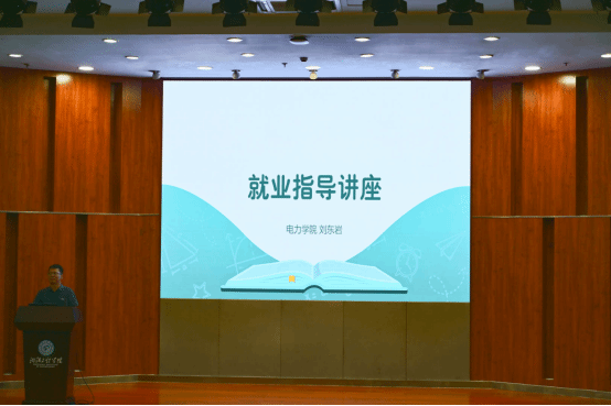 随后,学院就业总指导员刘东岩老师从就业形势、就业方向和就业建议三个方面进行了宣讲。通过对我院历年毕业生就业相关数据的收集整理,刘东岩老师分析了现阶段应届毕业生所面临的就业情况,并结合多年就业指导工作经验,向同学们建议要及早进行就业规划,把就业主动权掌握在自己手中。同时,刘东岩老师也着重讲解了我院毕业生就业地区分布、就业行业分布,升学深造等情况,重点介绍了国家电网、南方电网等就业企业情况,并就求职信息获取和生涯规划等方面给出了具体建议,鼓励同学们尽早了解就业信息,为就业做好充分准备。