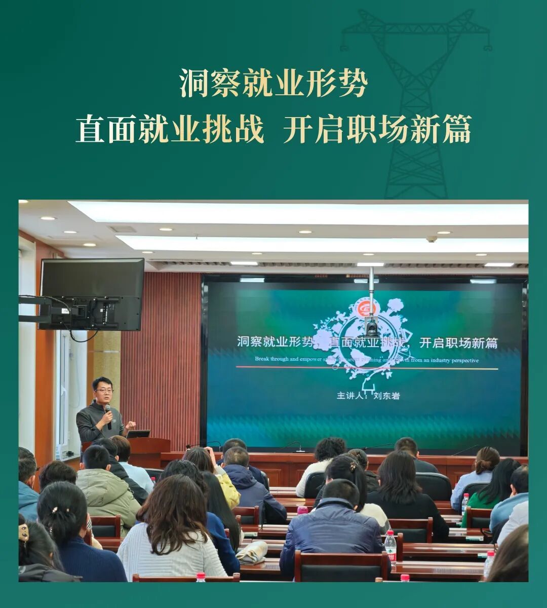 面对新格局,他提出“主动识变、积极应变、创新求变”的“三变”行动纲领,引导学生跳出单一求职视角,将个人发展嵌入“双碳”目标、新型电力系统建设等国家战略赛道。他通过精准的数据解读、鲜活的行业案例与可操作的路径建议,帮助学子看清趋势、认清自身、瞄准靶心,在时代的浪潮中筑牢专业根基、拓展能力边界,最终于变革中把握主动,于机遇中赢得未来。
