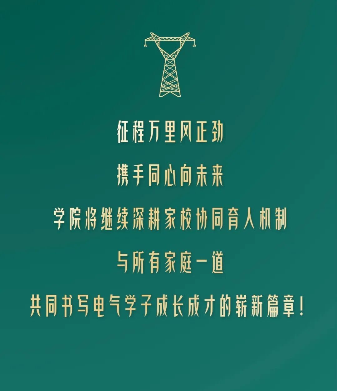 我们坚信,当学院的专业指导与家庭的亲情力量深度融合,当学生的个人梦想与时代的强国脉搏同频共振,每一位电气青年都必将在新时代的广阔舞台上,以扎实的专业功底、卓越的综合素养与昂扬的奋斗姿态,点亮属于自己的璀璨未来,最终汇聚成支撑国家电力事业蓬勃发展的星辰大海。