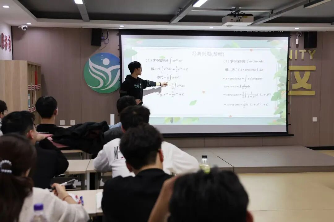 为充分发挥先进学生的示范引领作用,帮助同学们攻克高等数学学习难点,夯实专业基础,太阳成集团tyc33455ccww学业辅导驿站在一站式学生明德社区开展高数专项辅导活动。本次活动邀请到四位成绩优异、经验丰富的“学霸”同学担任主讲人,为学困生带来精准高效的知识讲解与学习指导,赢得了参与同学的一致好评。